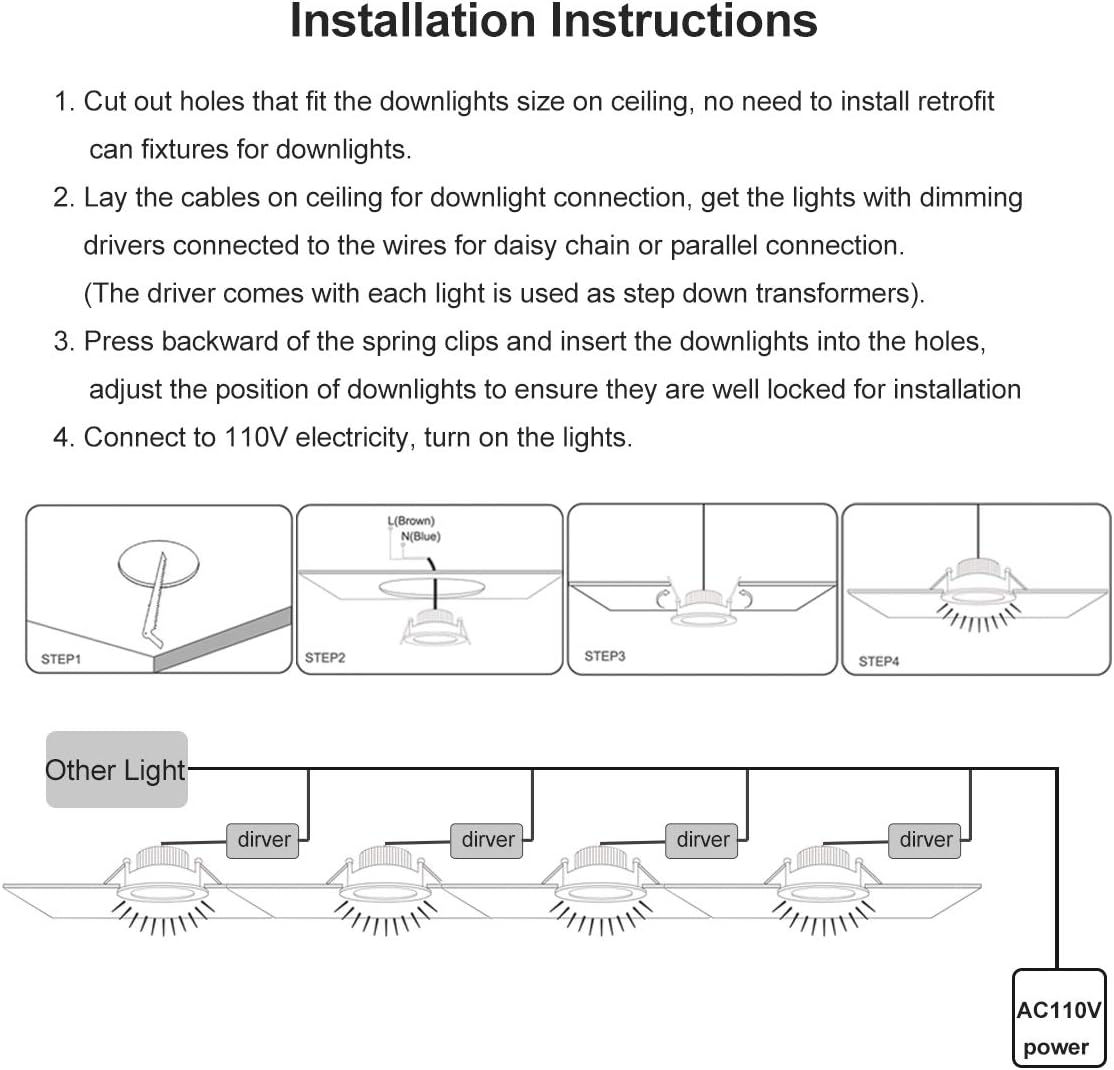 Torchstar 3 gimbal led dimmable recessed light, oil rubbed bronze, pack of 6, 2 by w86 trading co., llc. 5 and 6 e series led module. Cut the hole with a drywall saw and mark all the light locations. Make sure not to snag any wires that may be in the ceiling cavity. The dimmable design with 5 selecctable color temperatures lets you customize lighting to your preference, while the 8w led provides efficient and reliable operation.